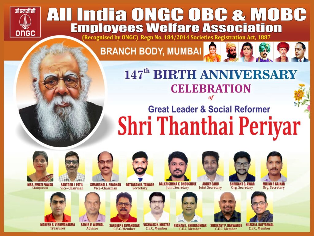 147 birth anniversary of Thanthai Periyar celebrated by All India ONGC OBC & MOBC Employees Welfare Association Mumbai